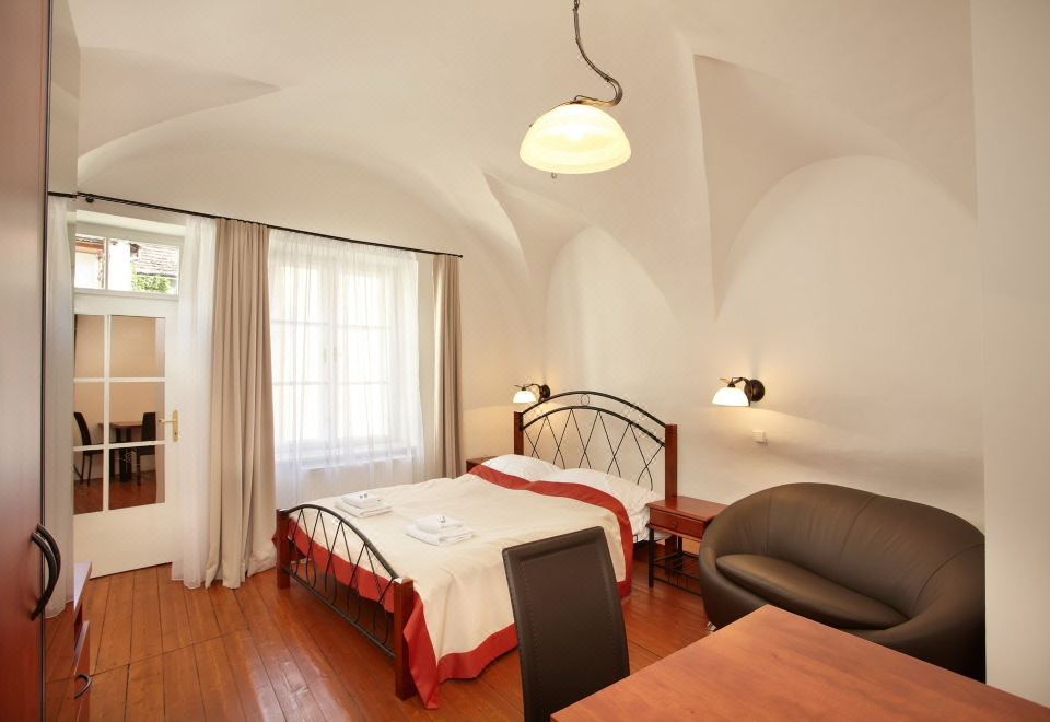 A stay at Residence Muzeum Vltavinu places you in the heart of Český Krumlov, within a 10-minute walk of Cesky Krumlov Castle and Motorcycle Museum. This aparthotel is 0.1 mi (0.1 km) from Church of St. Vitus and 0.1 mi (0.1 km) from Jakoubek House.This smoke-free aparthotel features hiking/biking trails nearby.Featured amenities include luggage storage and a safe deposit box at the front desk.Make yourself at home in one of the 7 guestrooms, featuring kitchenettes with refrigerators and microwaves. LCD televisions are provided for your entertainment. Conveniences include desks and separate sitting areas, and housekeeping is provided on a limited basis.